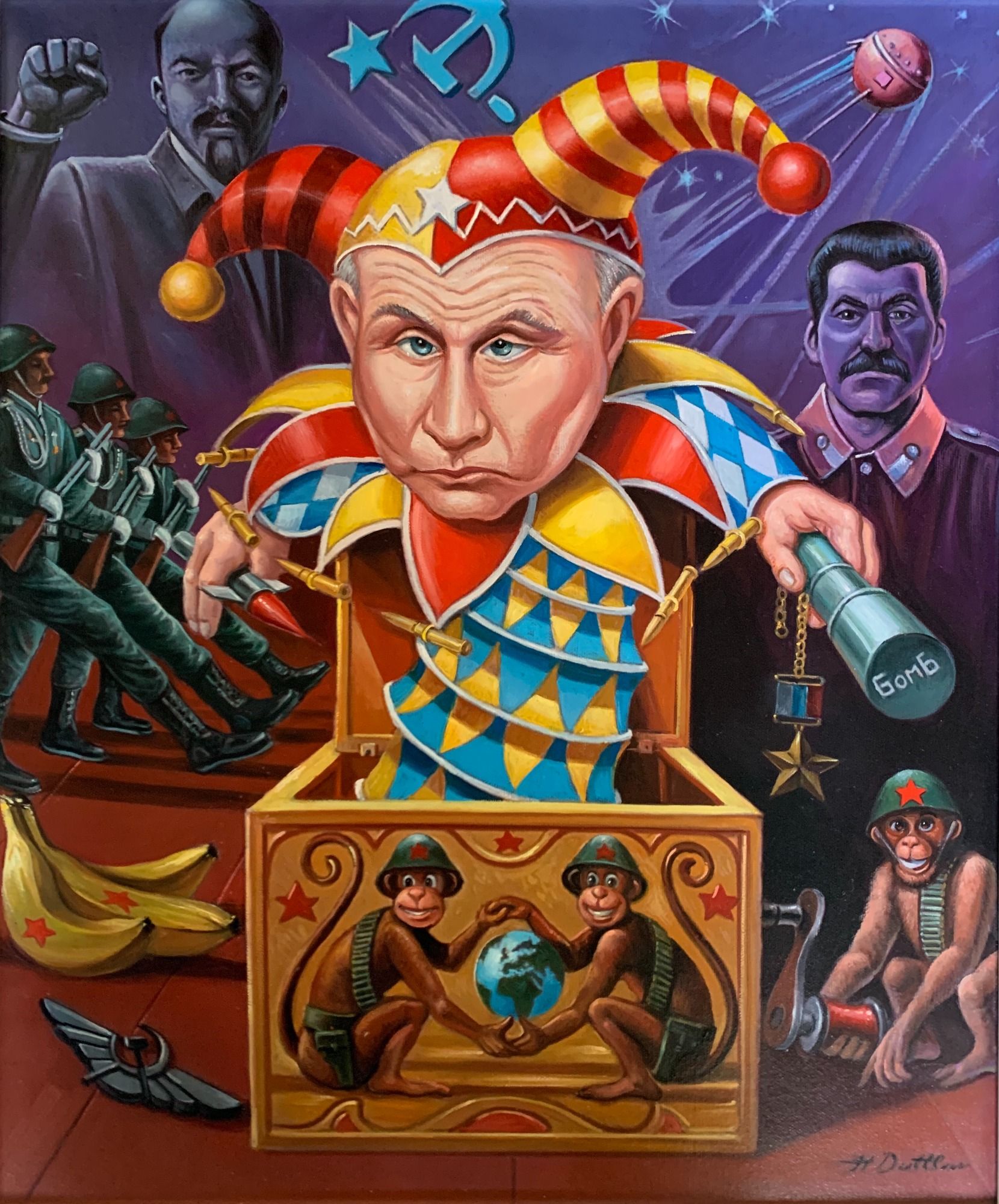Anlässlich des Ukraine-Krieges hat der Künstler zwei außergewöhnliche, zeitgeschichtlich höchst relevante Antikriegsbilder im Stil der Pop-Art geschaffen.